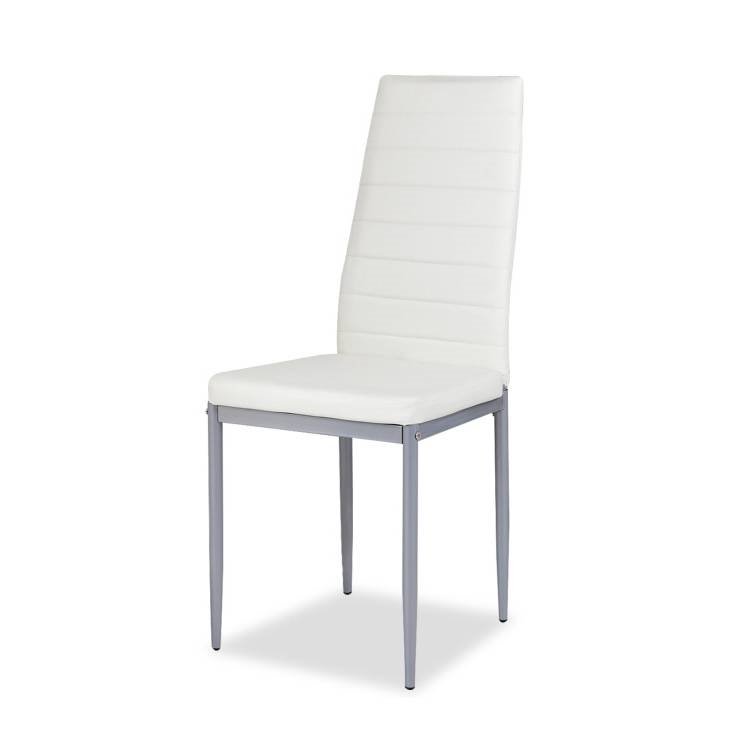 Home > Set of 4 Modern High Back White PVC Leather Dining Chairs with Metal Legs